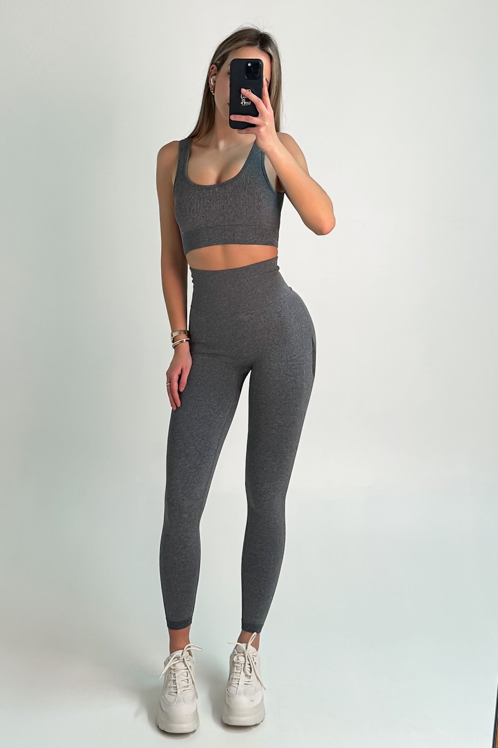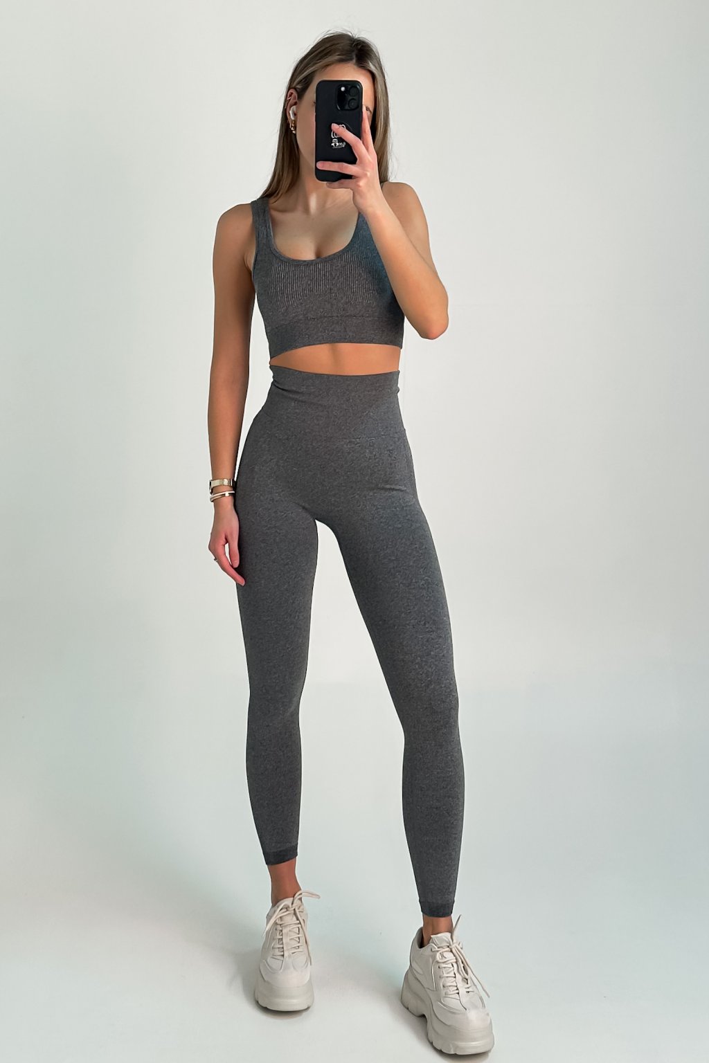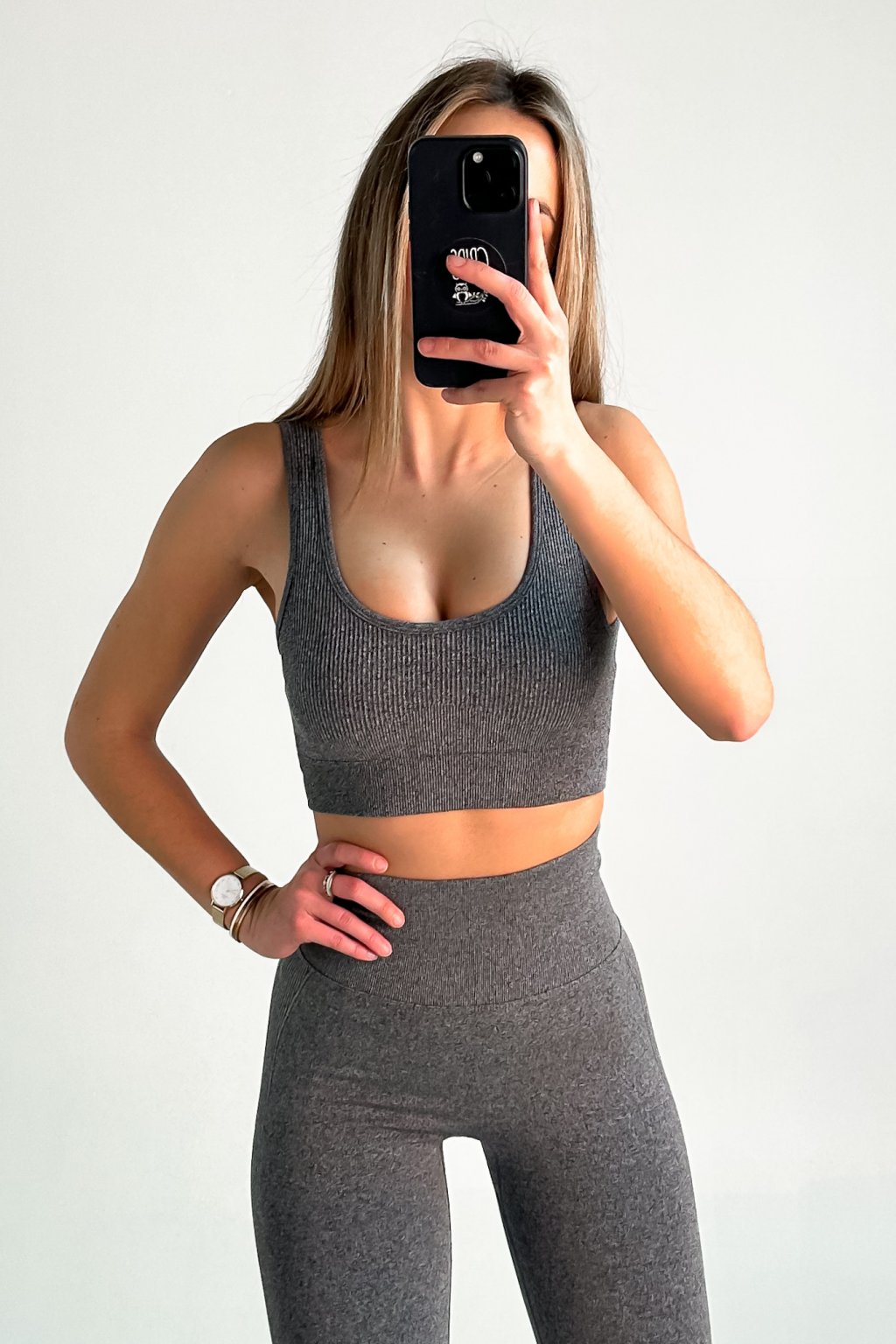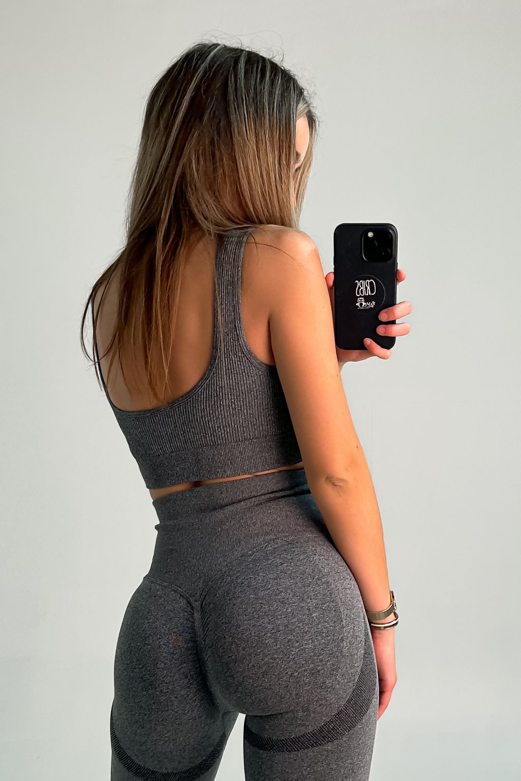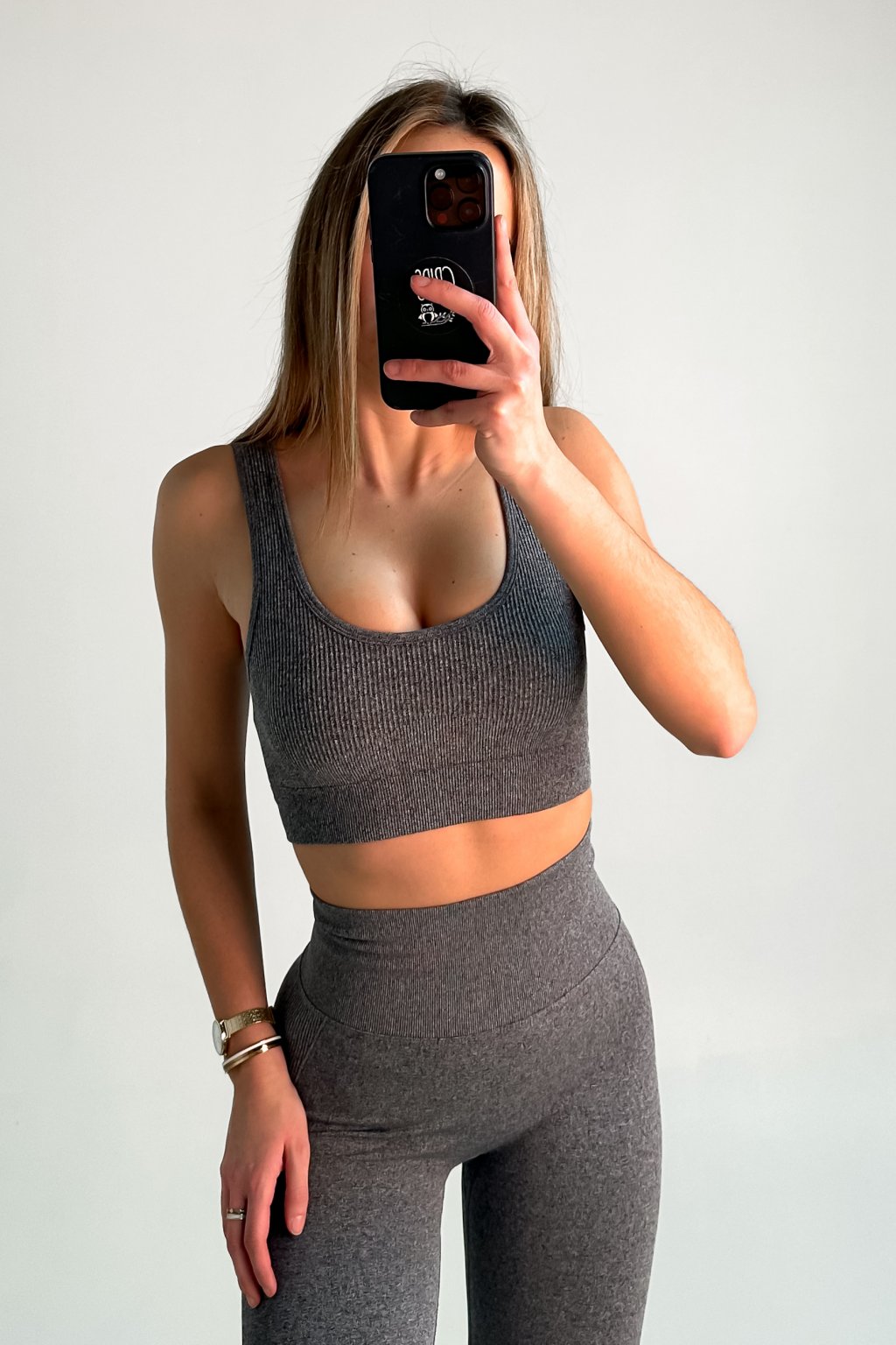 Športová elastická vrúbkovaná podprsenka na ramienka v crop strihu s výplňou na prsiach.