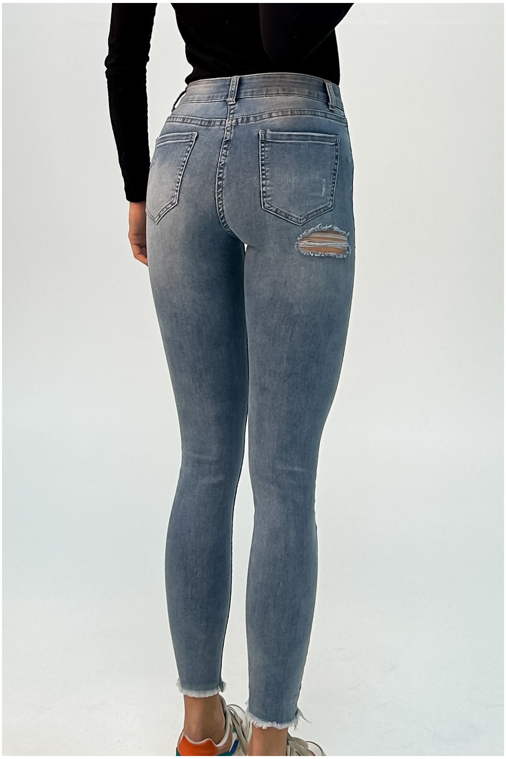Svelto-modré skinny džínsy bez ukončenia s dierami