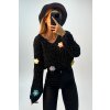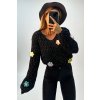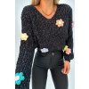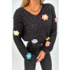 Sveter z mäkkého úpletu a 3D kvetinkami čierny