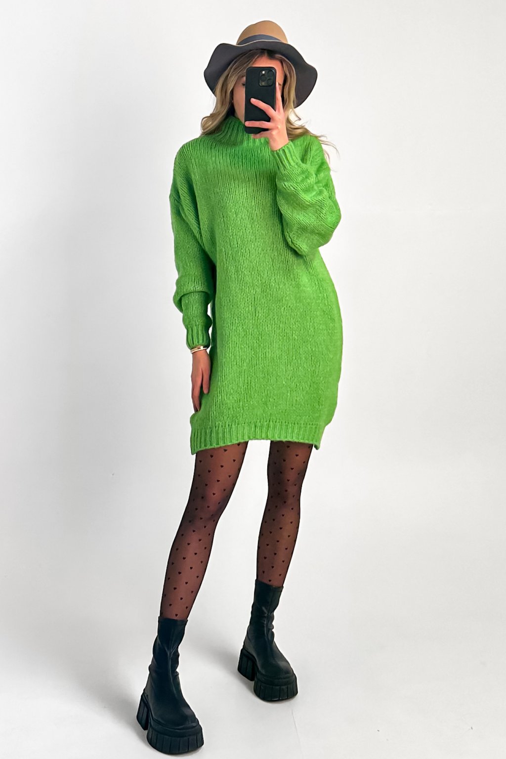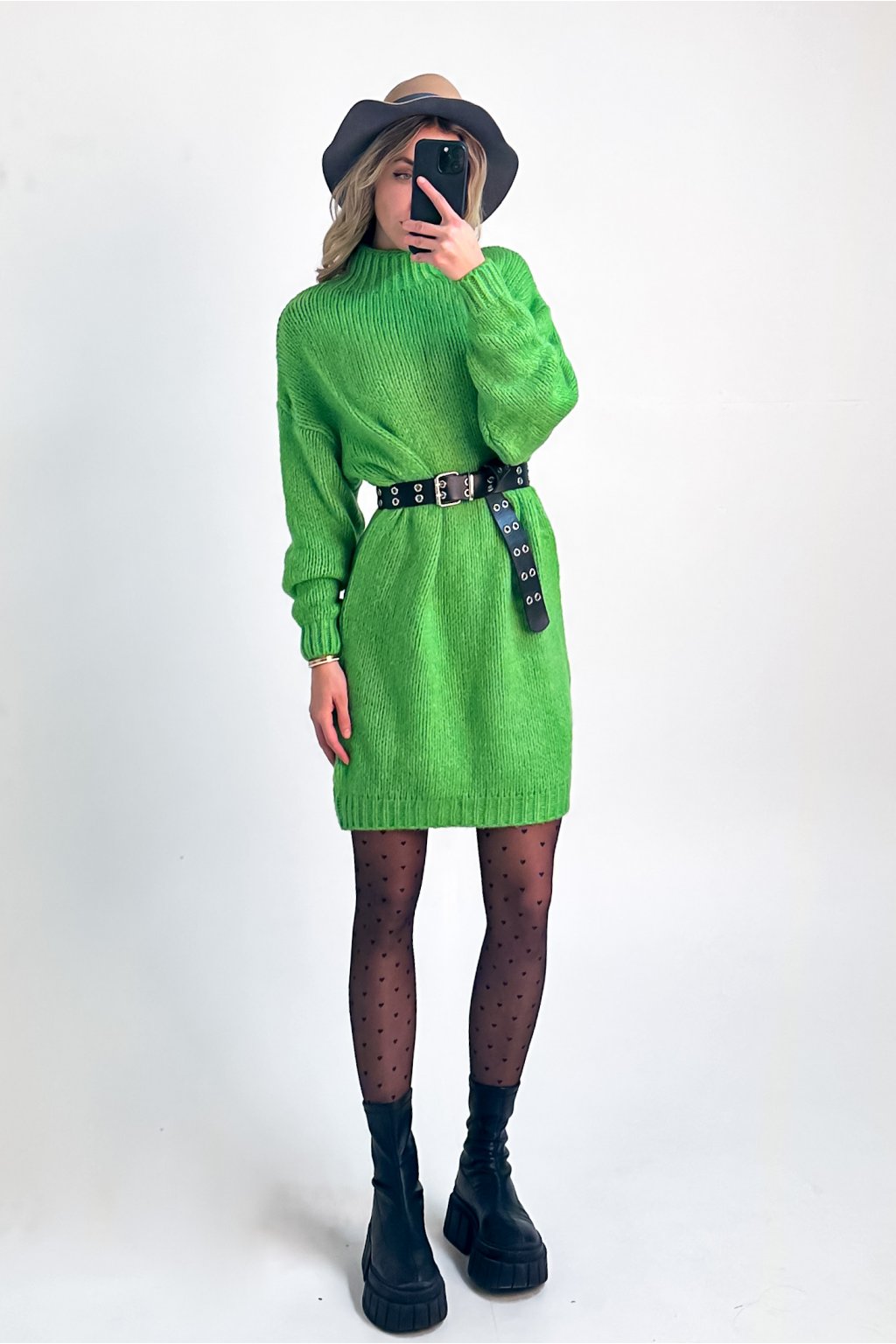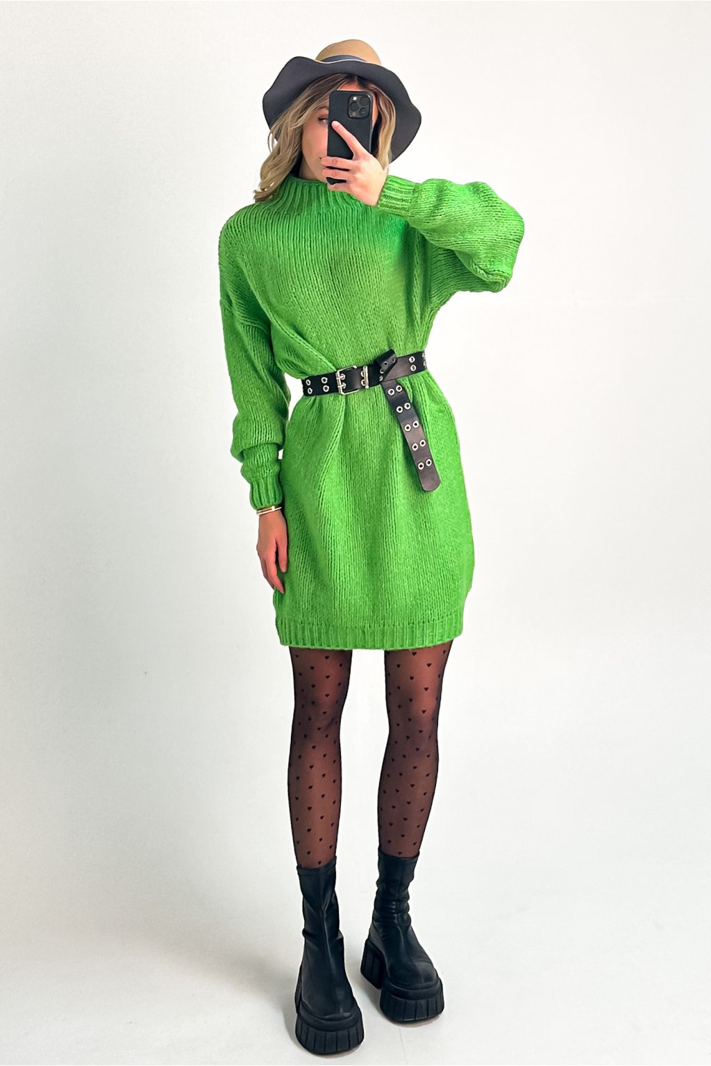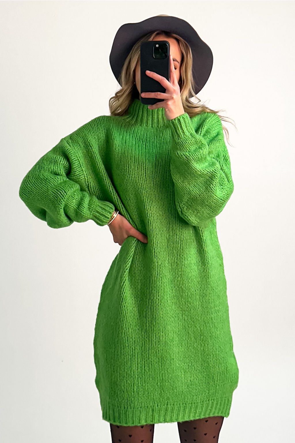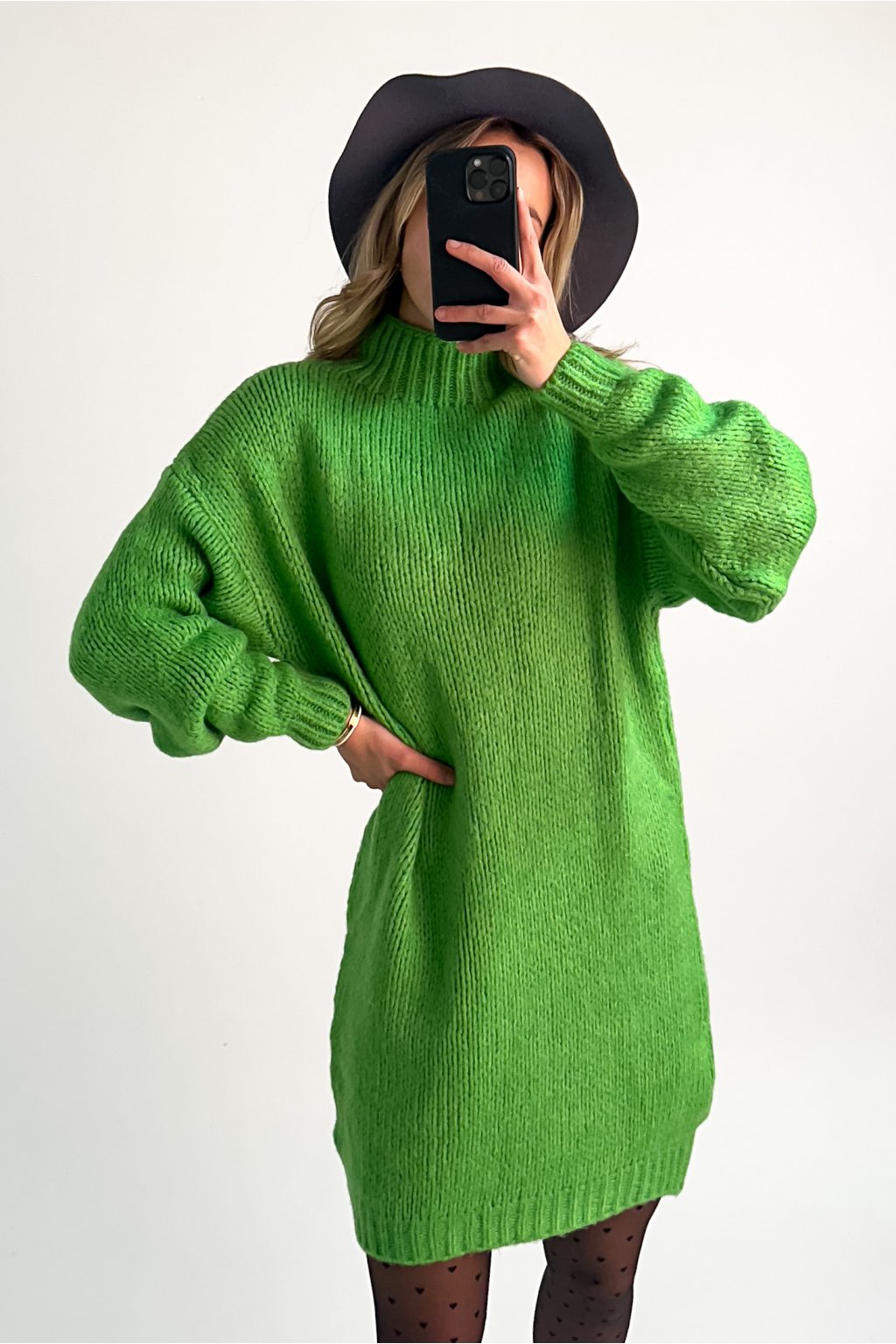 Dlhý sveter, alebo šaty tvorí z tohto produktu univerzálny kúsok, ktorý môžte kombinovať so silonkami, alebo s džínsami či legínami. Úpletový sveter s polorolákom je vo voľnom strihu vďaka čomu je pohodlný, avšak dokonalý outfit dotvorí aj kombinácia s opaskom. Opasok na fotkách nie je súčasťou produktu.