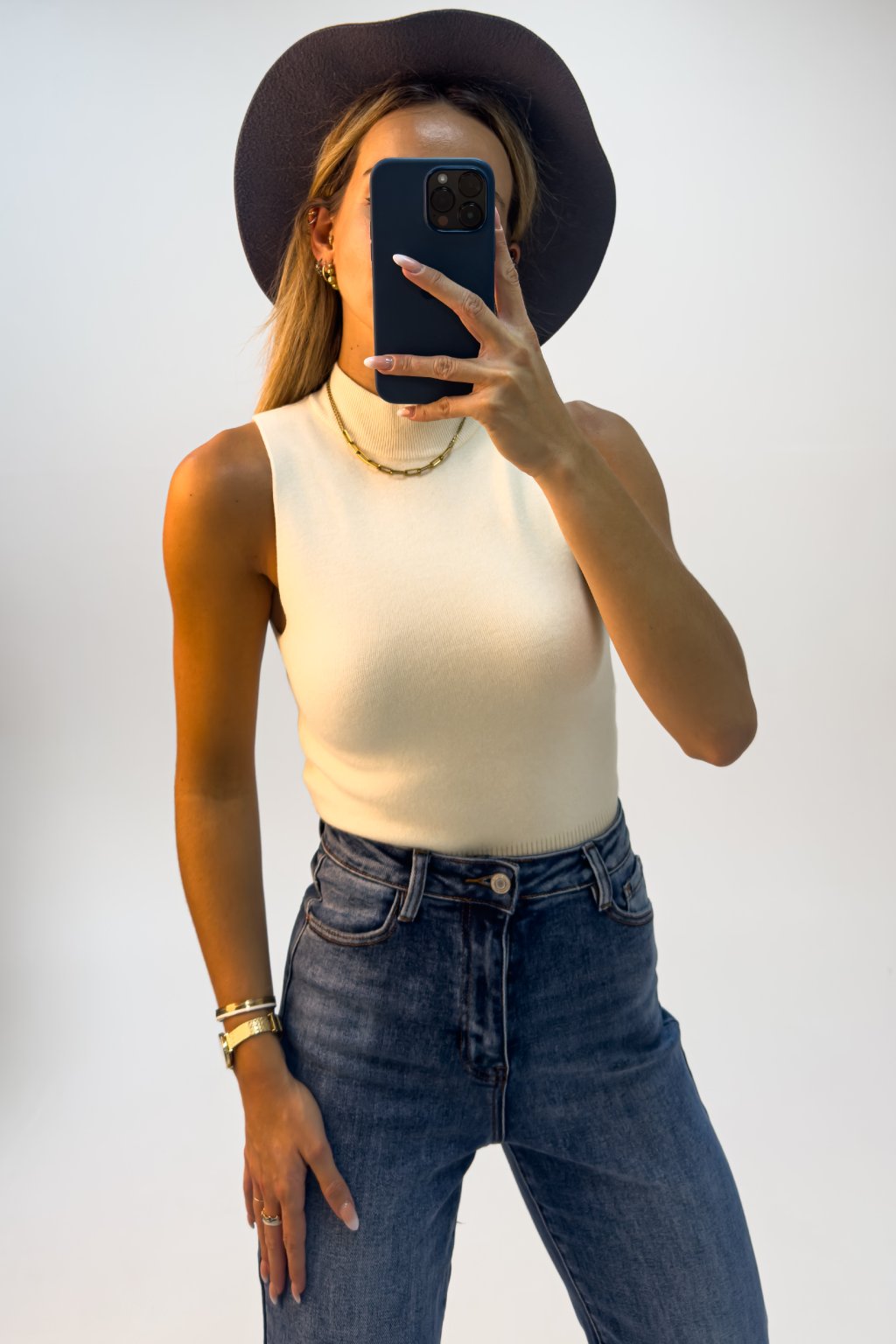 Top ku krku z príjemného úpletu krémový