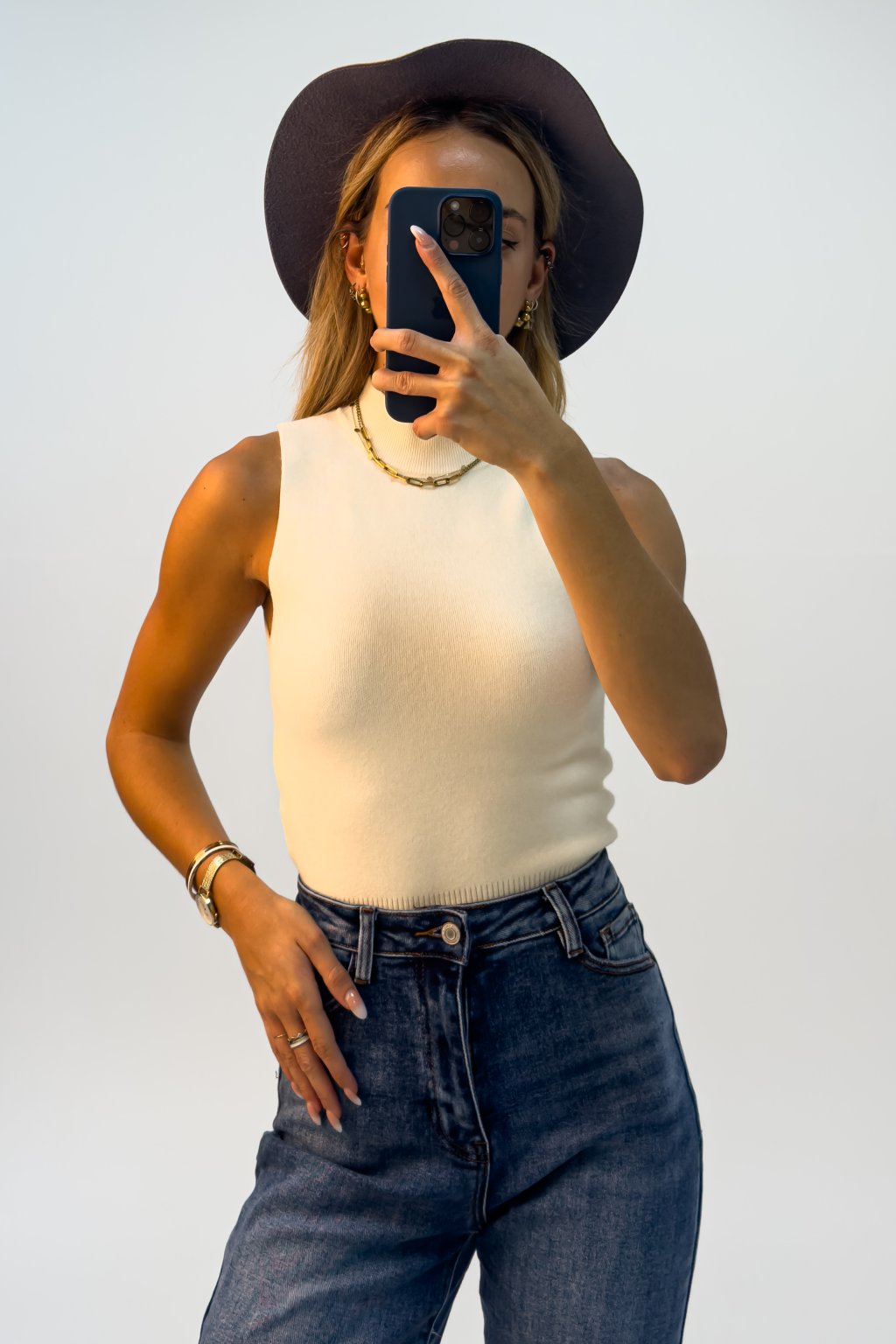 Top ku krku z príjemného úpletu krémový