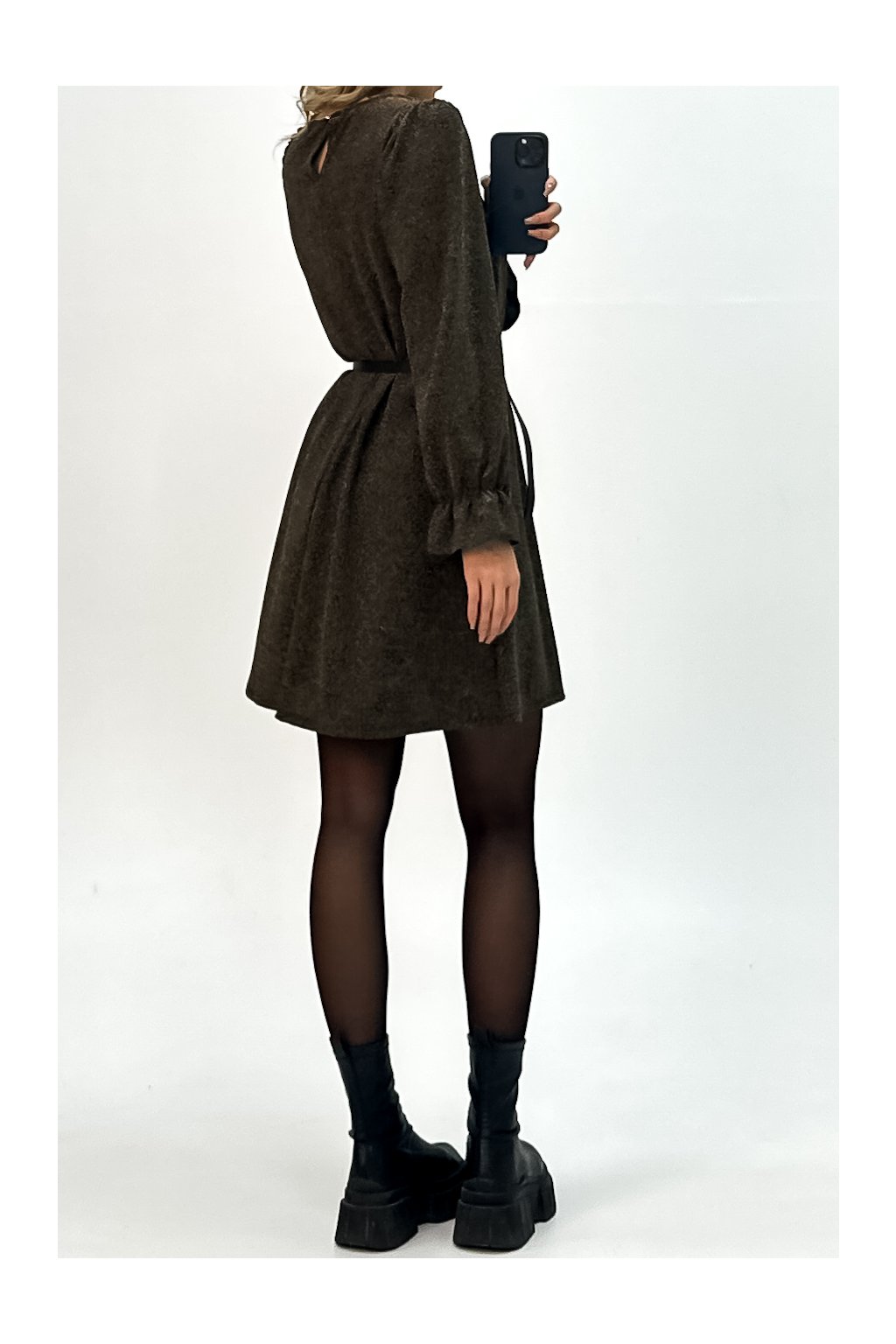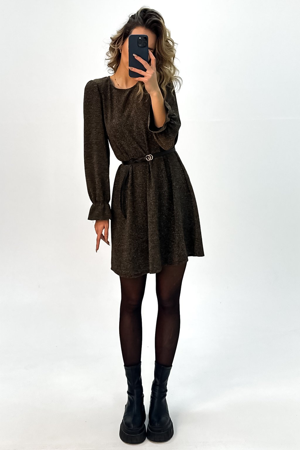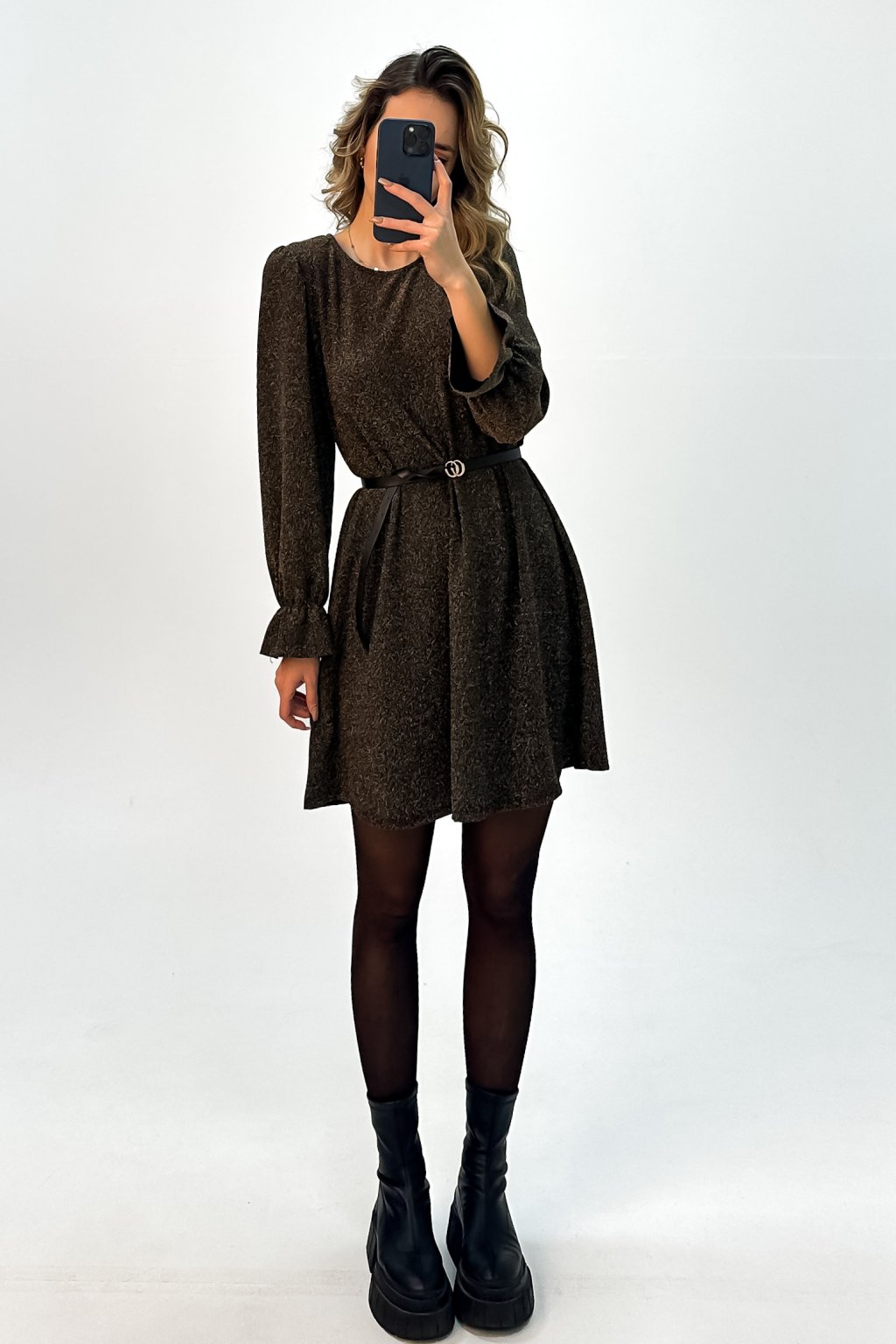 Pohodlné šaty v oversize rovnom strihu s ozdobným rukávom a opaskom.