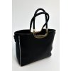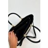 Čierna kabelka vyrobená z imitácie kože, s vnútornými priehradkami, s pridaným crossbody remienkom.