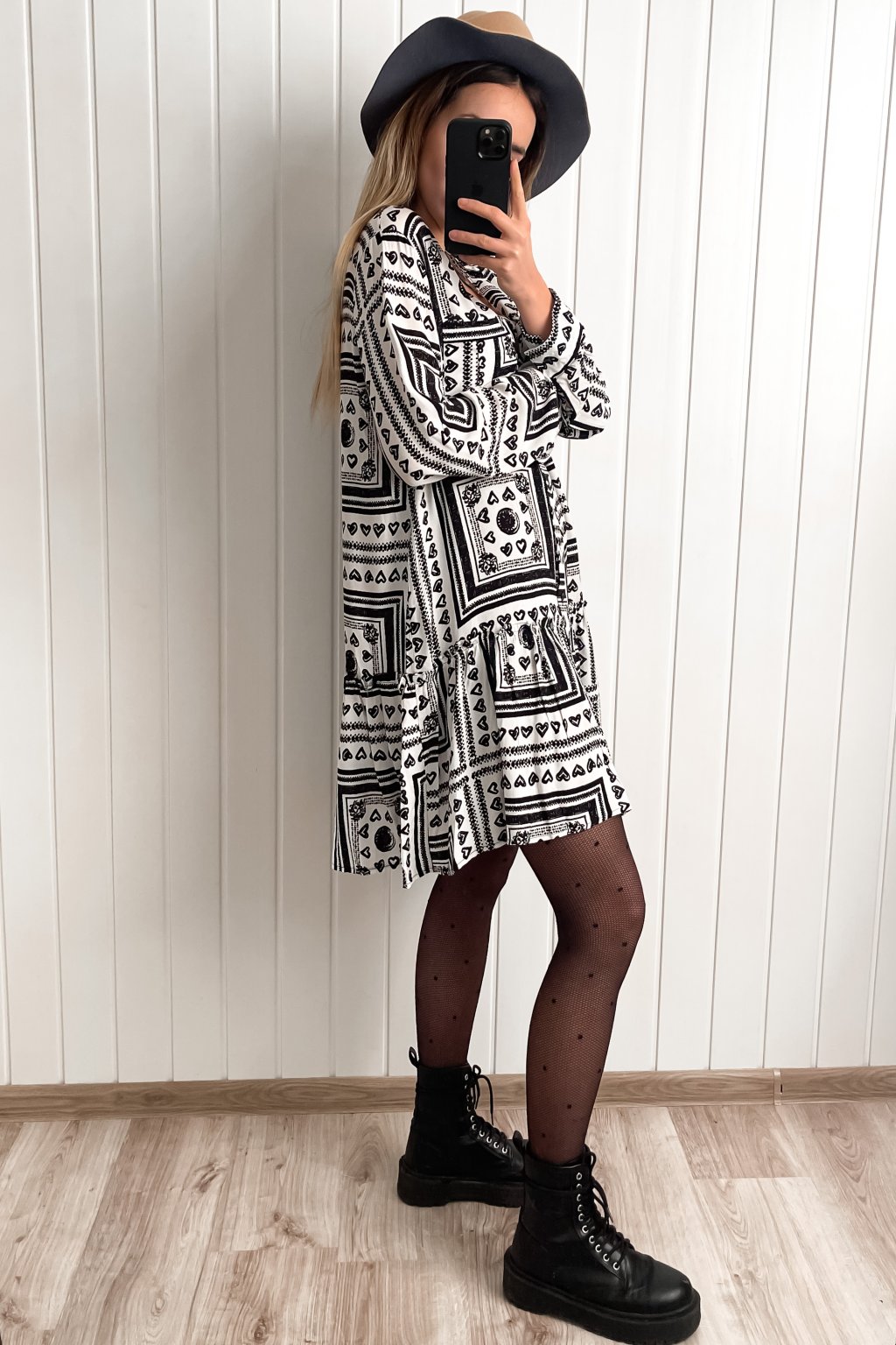 Viskózové vzorované šaty čierno-biele