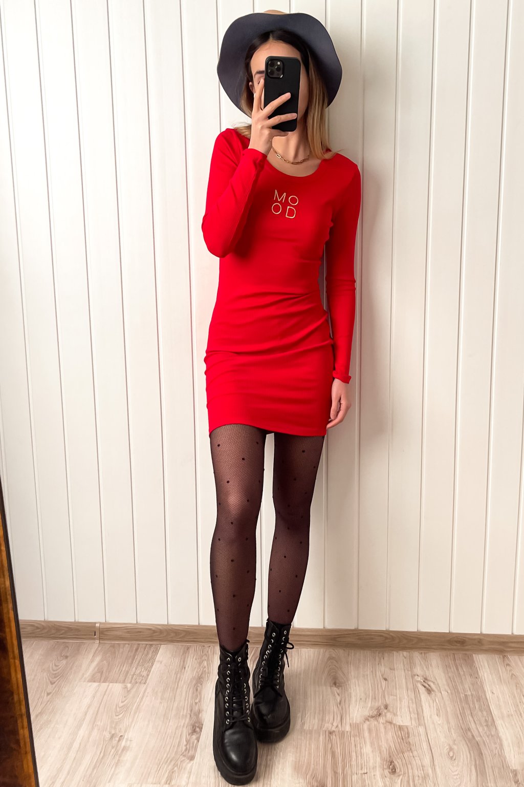Vrúbkované púzdrové šaty s vyšívaným nápisom zlatou niťou.