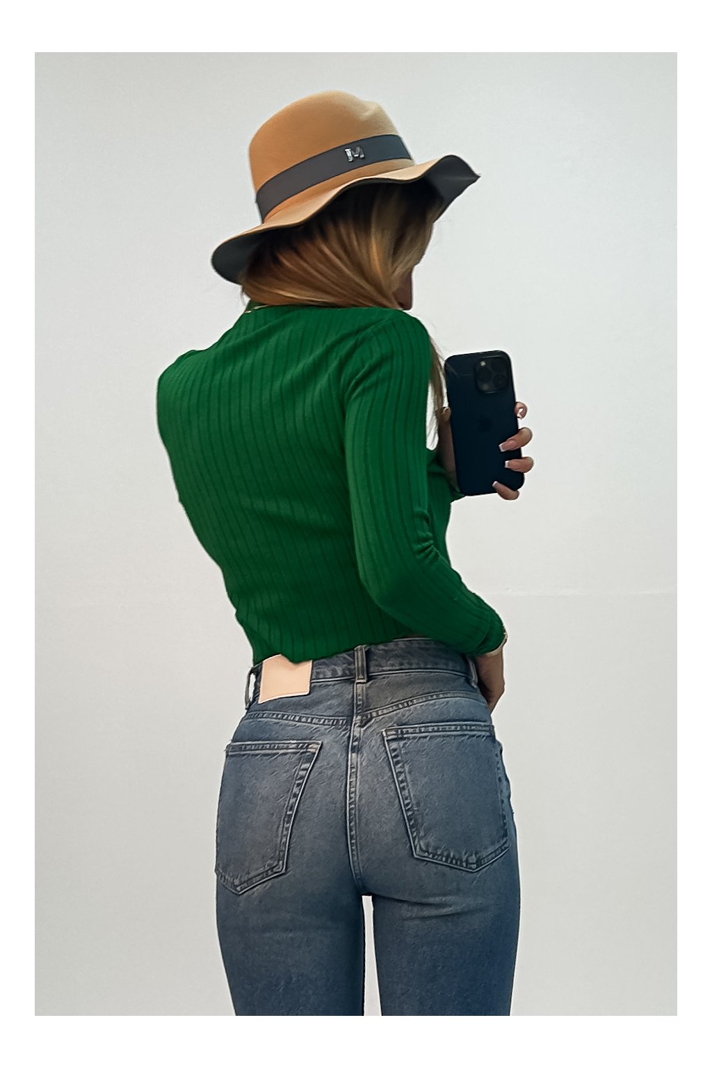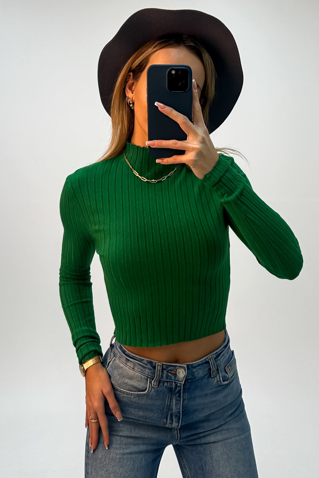 Vrubkovaný cropnutý polorolák z príjemného materiálu zelený