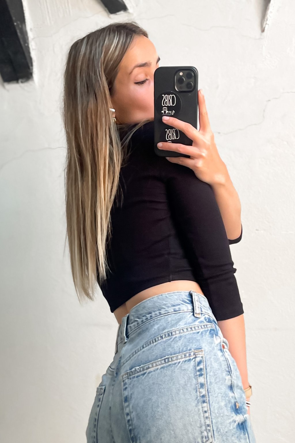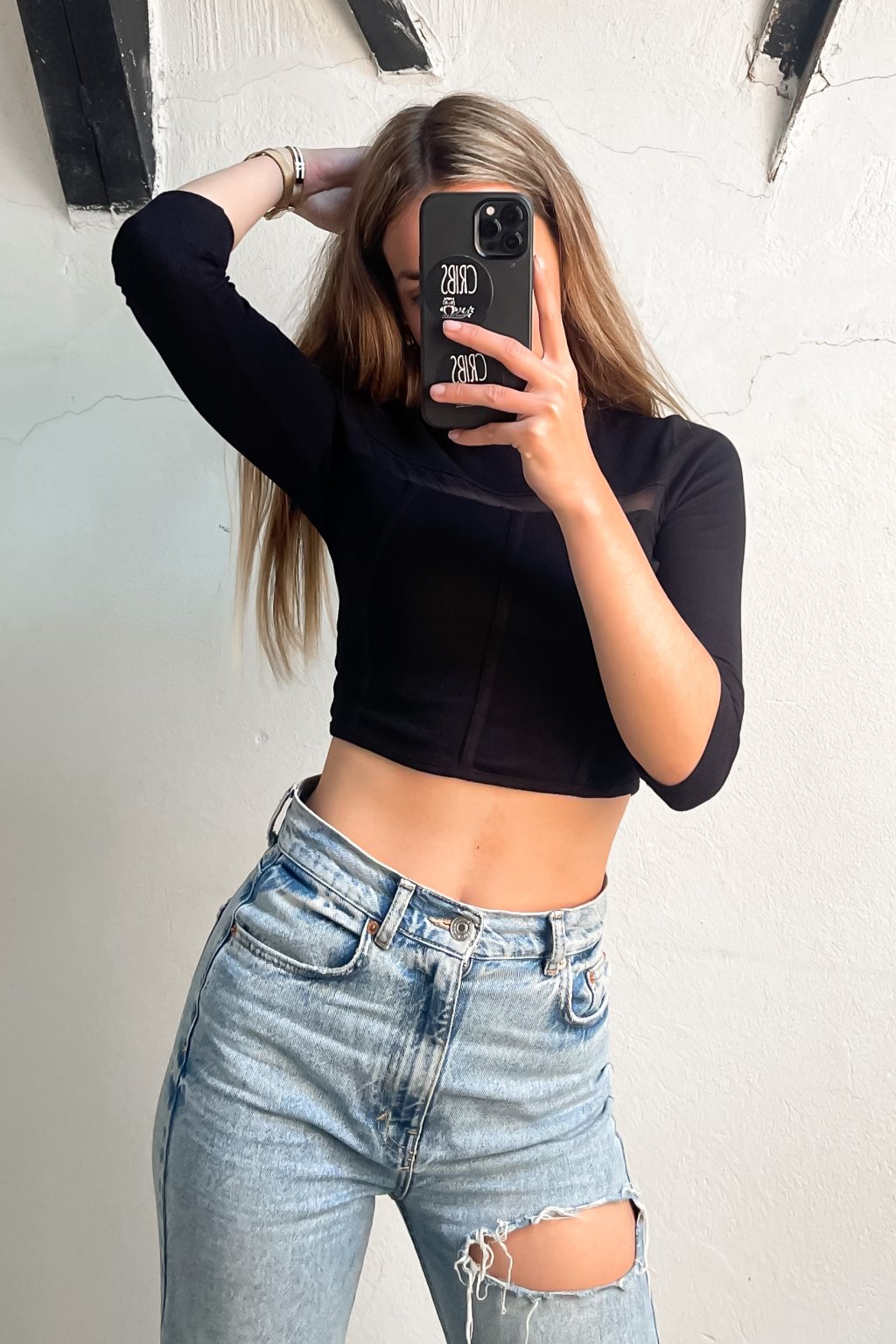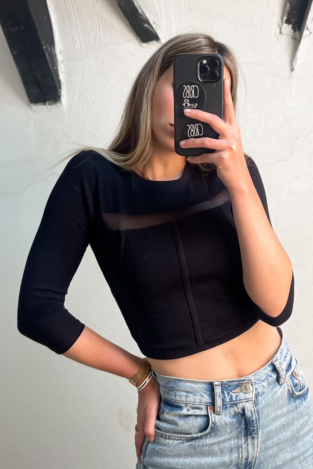 Vrúbkovaný top s transparentnou časťou čierny