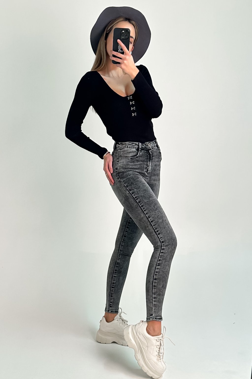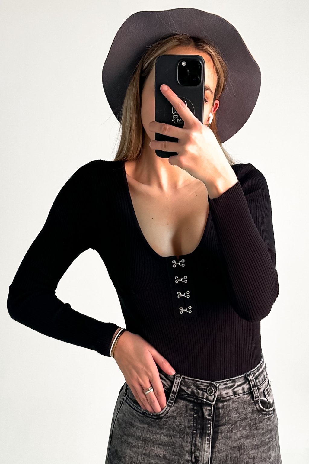Modelka Laura je 173cm vysoká, bežne nosí veľkosť S a na sebe má veľkosť UNI.