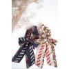 Komplet dvoch gumičiek do vlasov v tmavomodrej a béžovej farbe s kvietkovanou potlačou a odoberateľnou ozdobnou mašličkou.