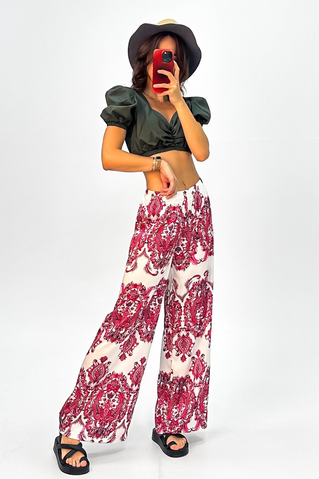 Pohodlné vzdušné nohavice v širokom strihu s gumou v páse.