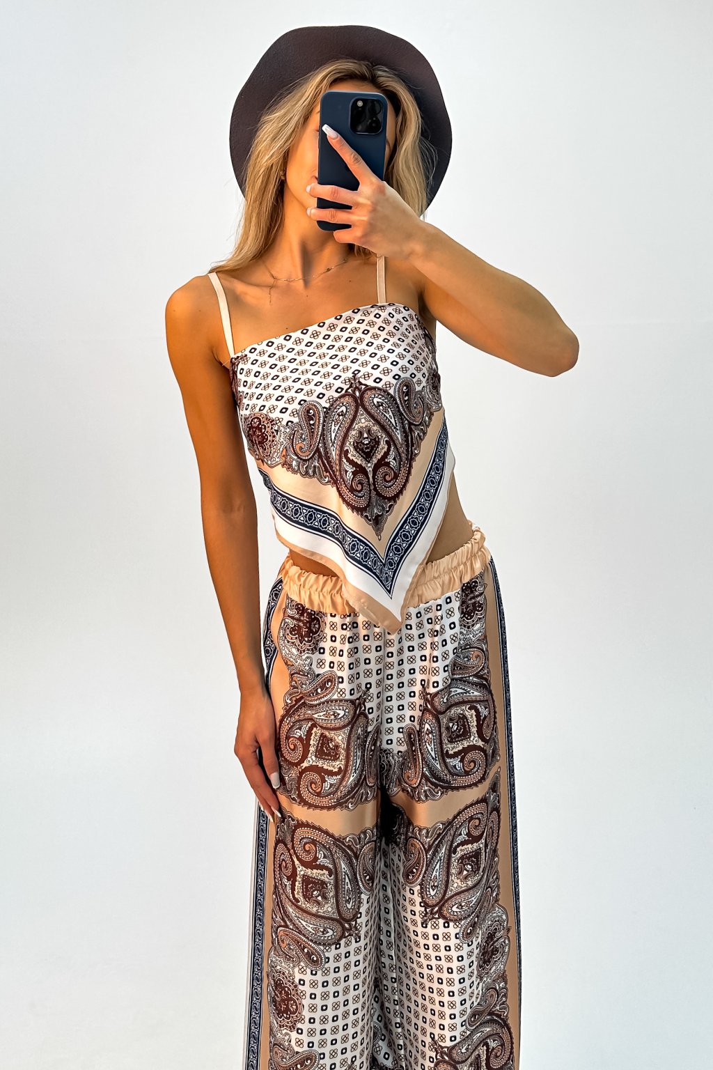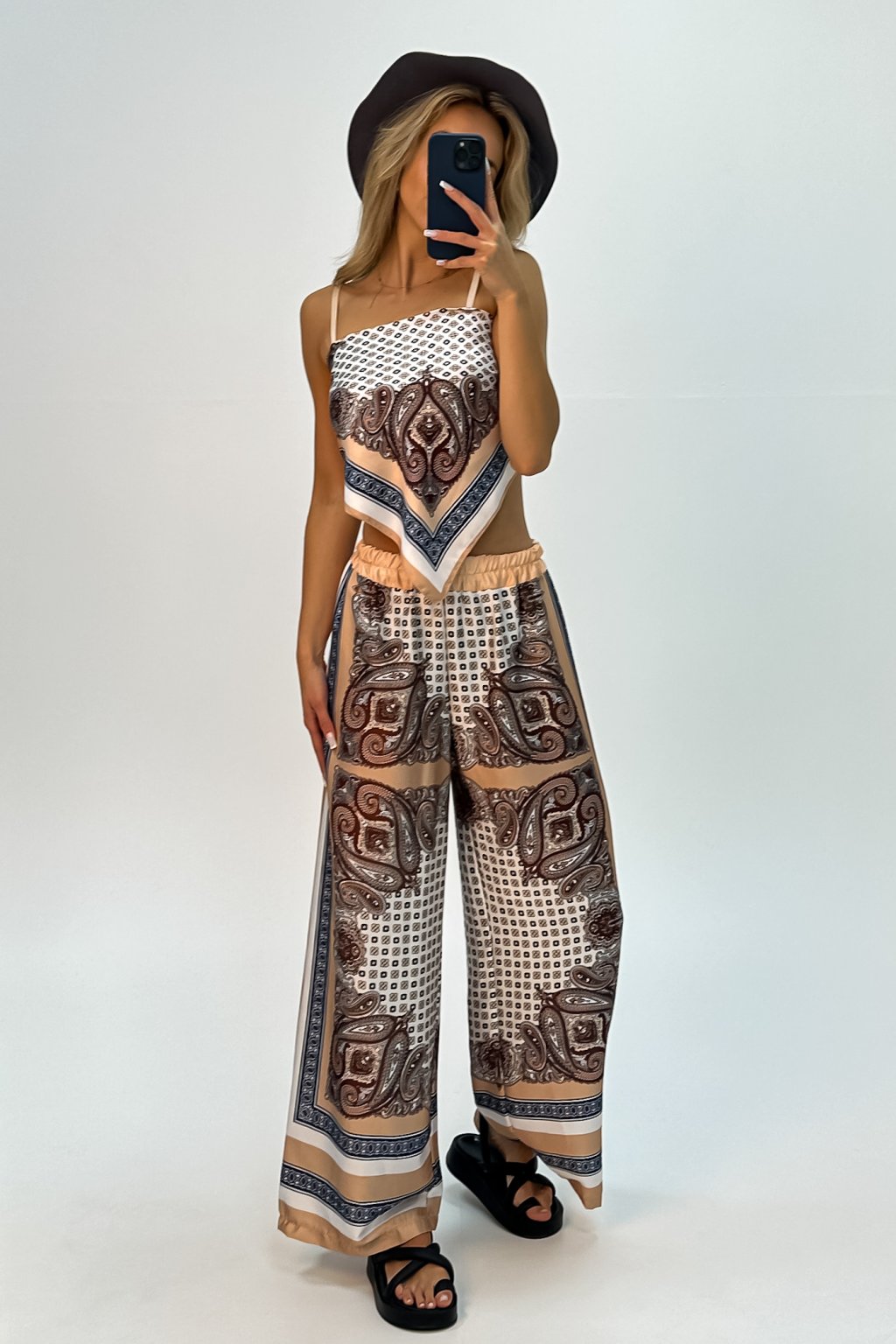 Pohodlné vzorované nohavice vo voľnom strihu s gumou v páse.